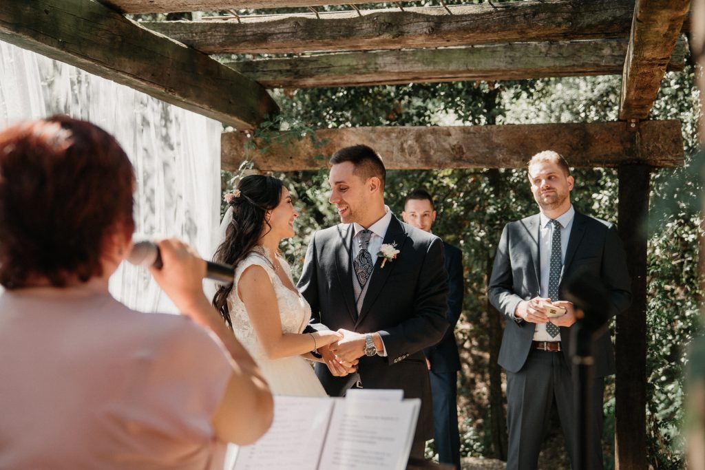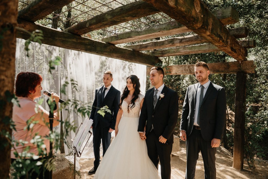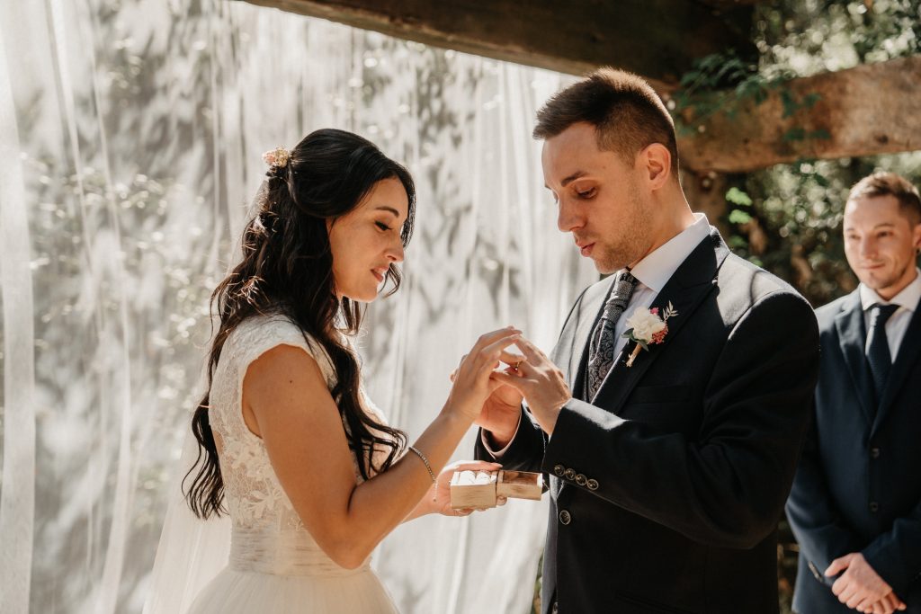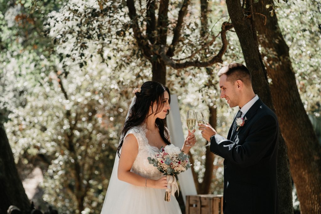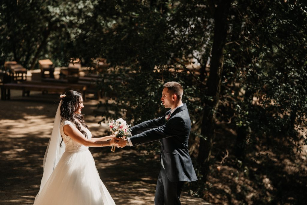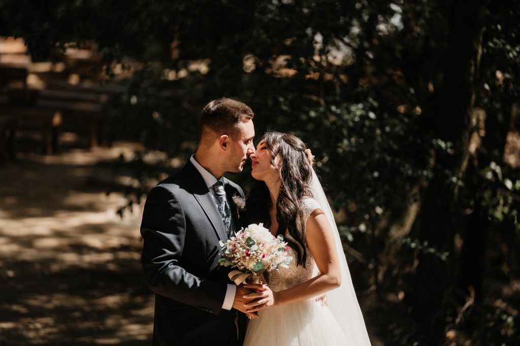 La ceremonia civil fue en un hermoso bosque, rodeado de árboles que hicieron de este momento algo aún más especial. Con cada palabra que se pronunciaba, las miradas entre Carlos y Ana lo decían todo, y no pude evitar capturar esos momentos llenos de sentimiento y emoción. Luego, nos fuimos a hacer el reportaje de novios por el lugar, donde la naturaleza y el amor de esta pareja brillaban en cada fotografía.
