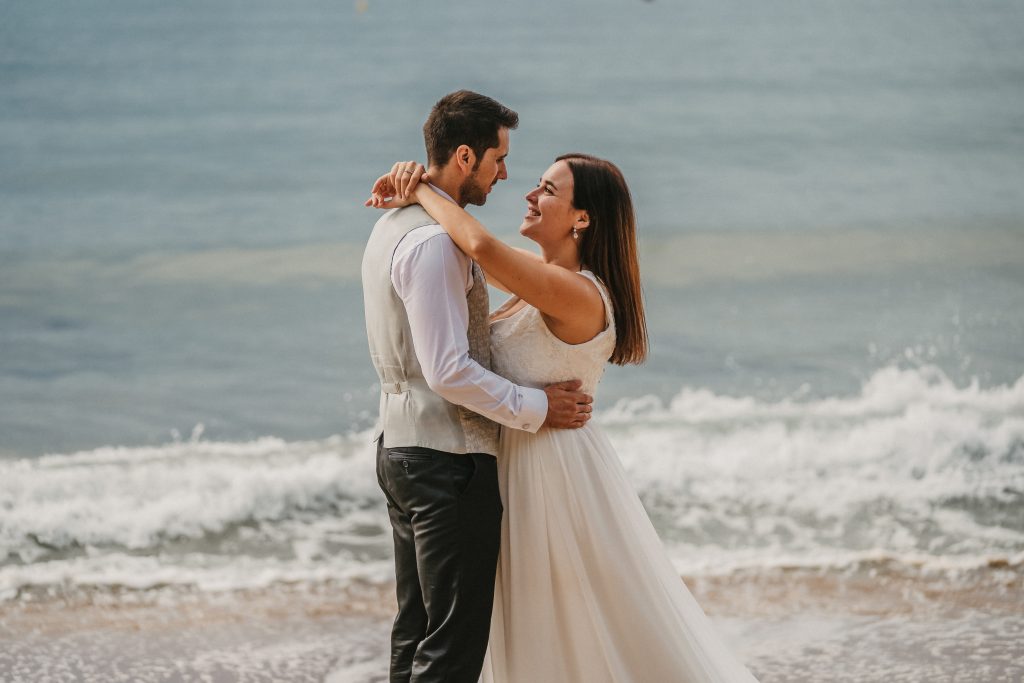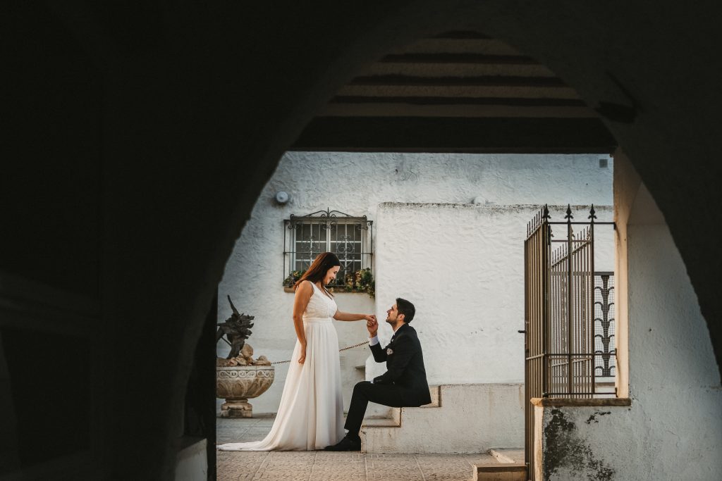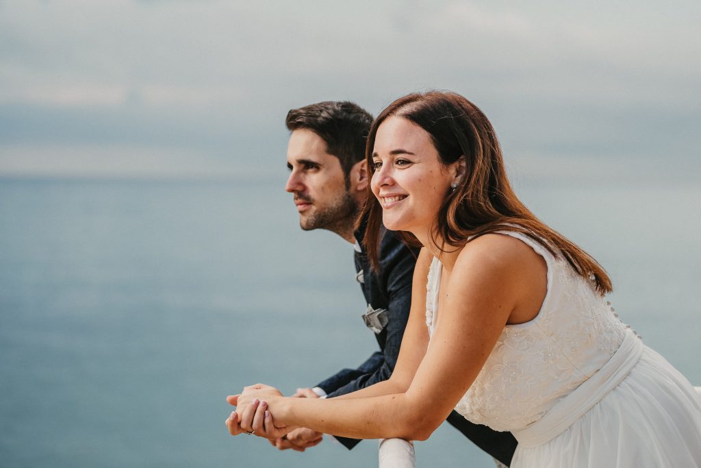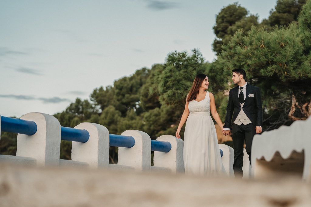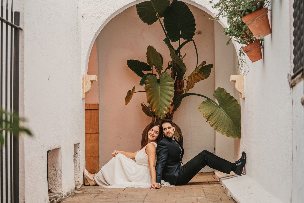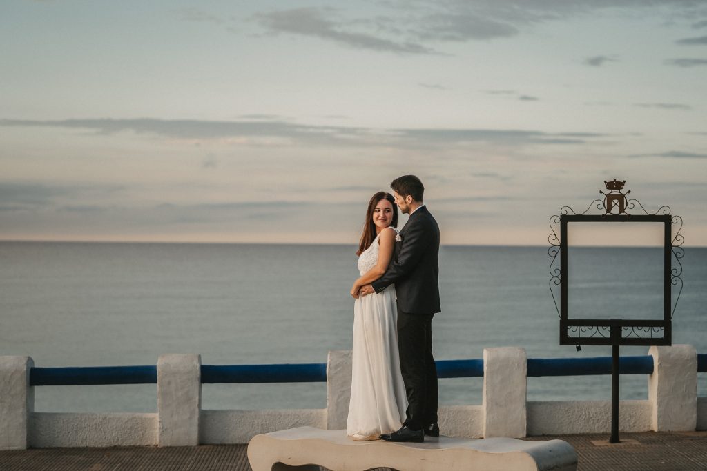 Recuerdo esos paseos tranquilos por el pueblecito, cuando todo lo que teníais que hacer era miraros, reír, y dejar que la naturaleza nos regalara esas imágenes llenas de luz y emoción. El mar, siempre tan presente, nos regaló un fondo perfecto para algunas fotos más románticas. Y cómo olvidar ese pequeño jardín, con su calma y su frescura, donde pudimos capturar esa conexión tan genuina entre vosotros.