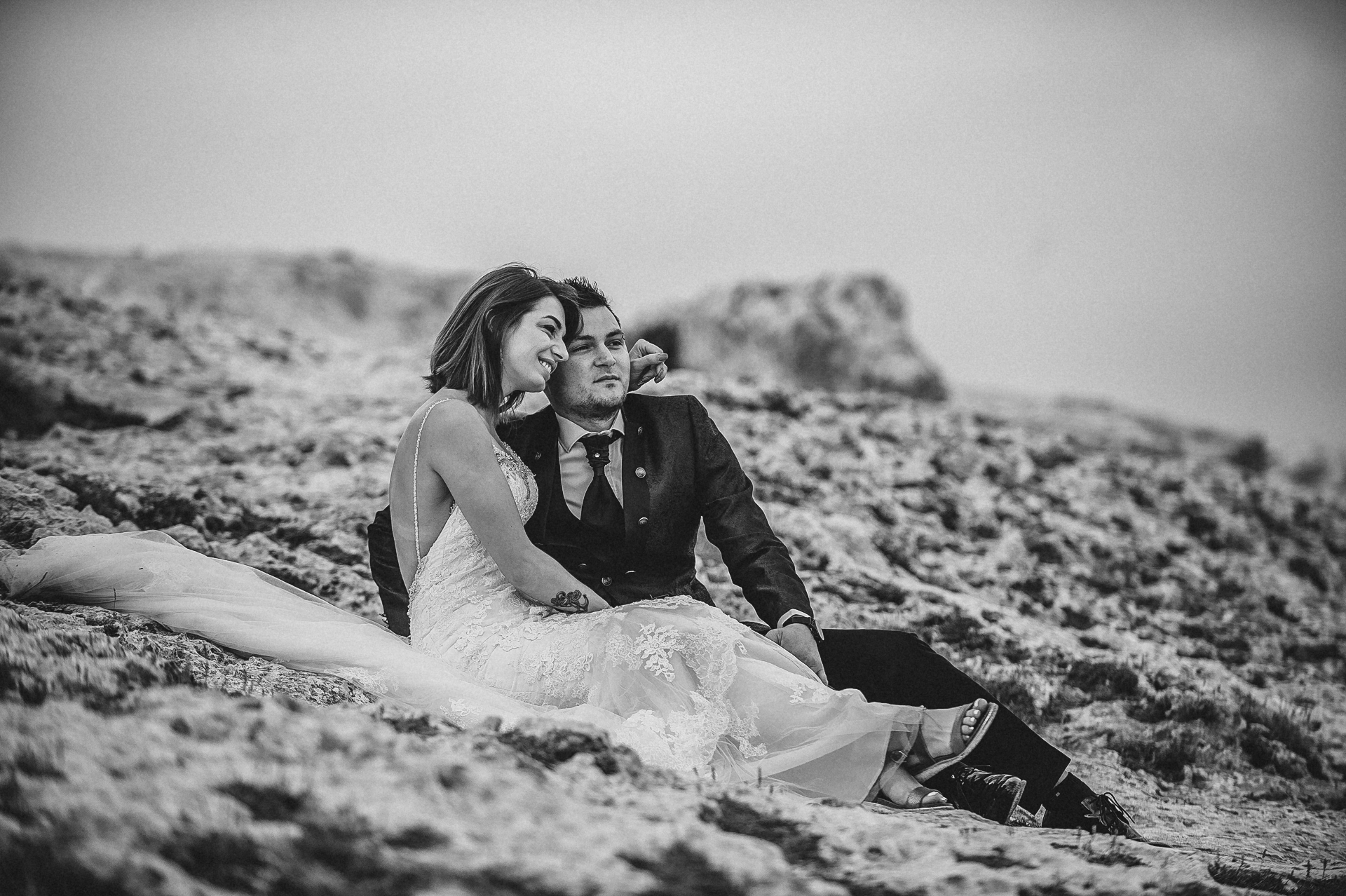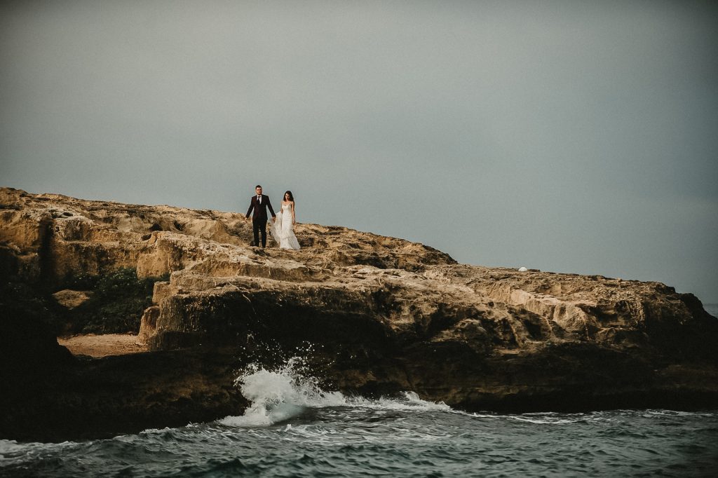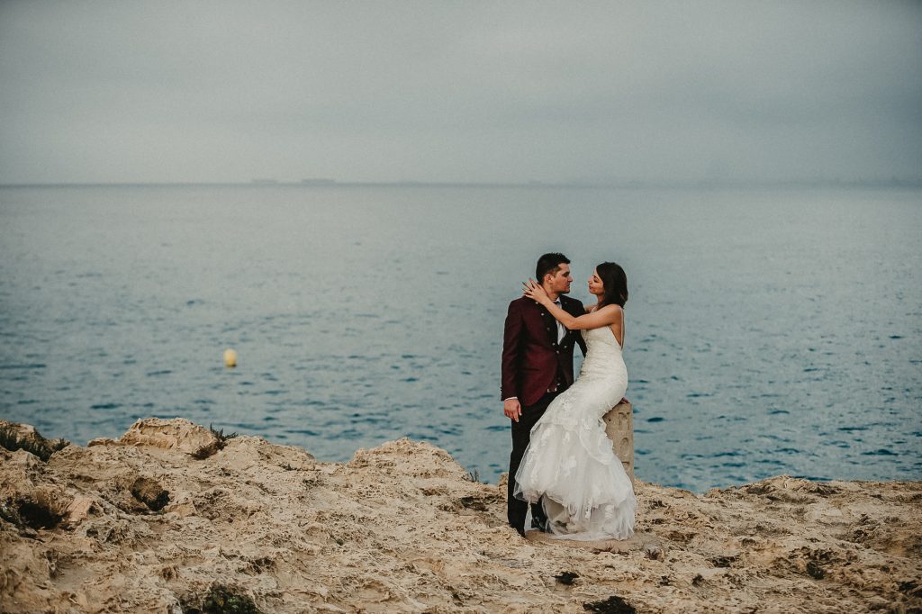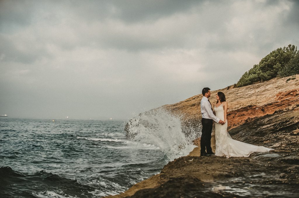 Elegir ese rincón junto al mar fue una decisión acertadísima, ¡qué tranquilidad se respiraba! Las rocas, la brisa suave y el mar de fondo… todo parecía salido de un sueño. Y lo mejor de todo fue que cada foto que tomamos reflejó esa esencia tan natural y espontánea que tiene vuestra relación. No hicimos nada forzado, solo dejamos que el momento fluya, y el resultado fue un álbum lleno de fotos auténticas, llenas de sentimiento.