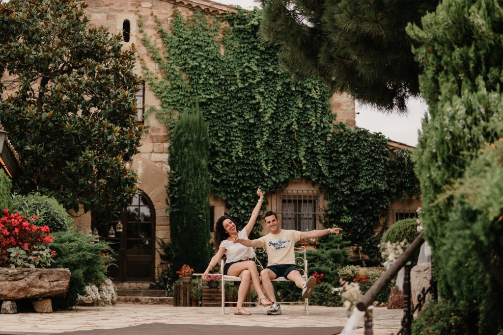 Recuerdo ese día como si fuera ayer. Llegamos a la Masía Mas Ventós y, al instante, la energía de Alen y Mariam me contagió. Fue un ambiente increíble, relajado y muy natural, lo cual me permitió capturar imágenes que realmente reflejan su esencia y la conexión que tienen. Comenzamos a caminar por todo el entorno de la Masía, rodeados de preciosos paisajes, y las fotos empezaron a surgir de manera espontánea.