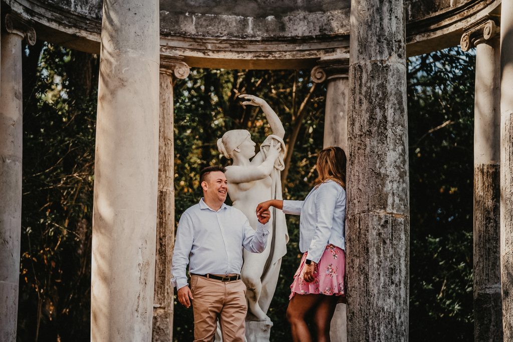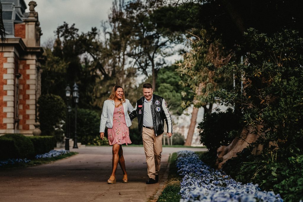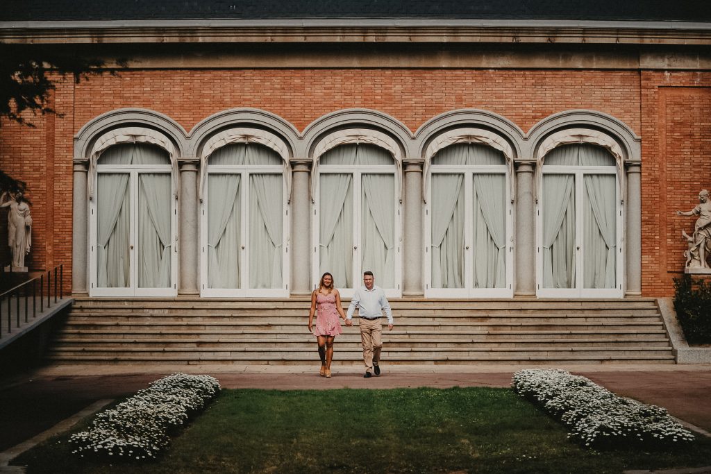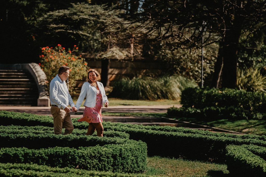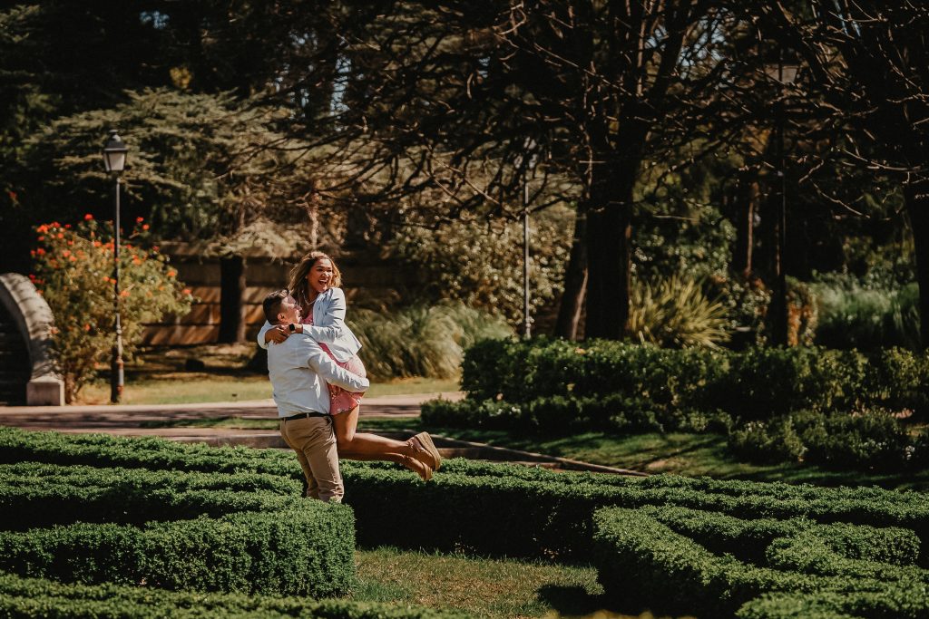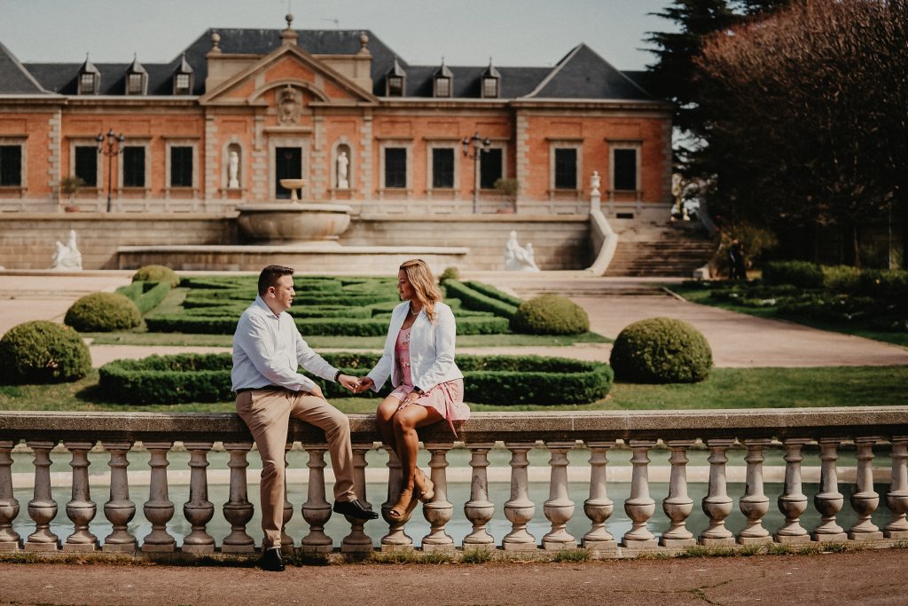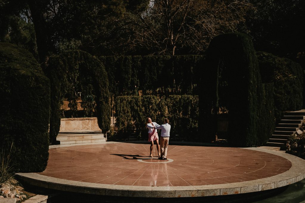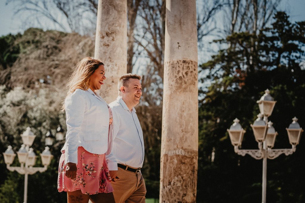 La mañana era perfecta, el sol estaba suave y la luz de la mañana resaltaba los colores vibrantes de los jardines. Pablo y Sandra estaban relajados, disfrutando de cada paso mientras paseaban entre las flores y los caminos verdes. Me encantó ver cómo se miraban, cómo se reían, y cómo se cuidaban. Cada foto contaba una historia, y las fotos de preboda en Barcelona se transformaron en recuerdos únicos de su amor.