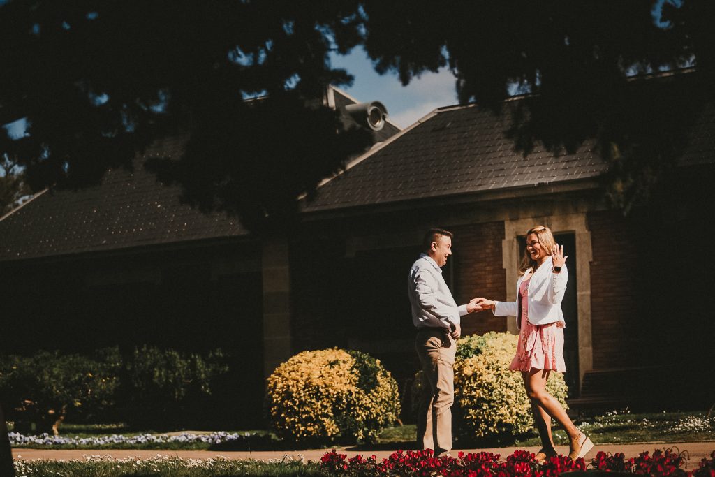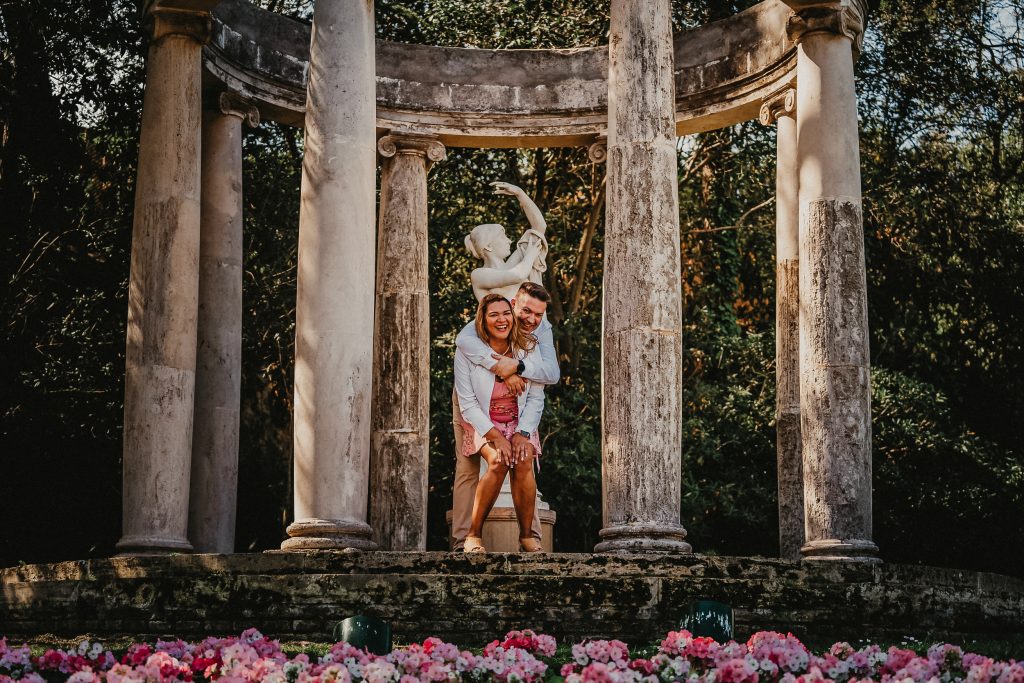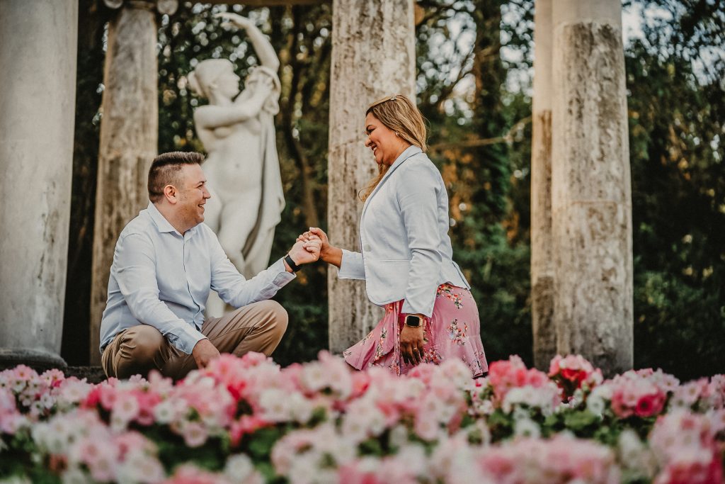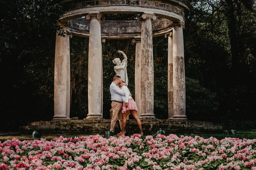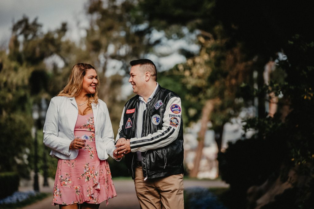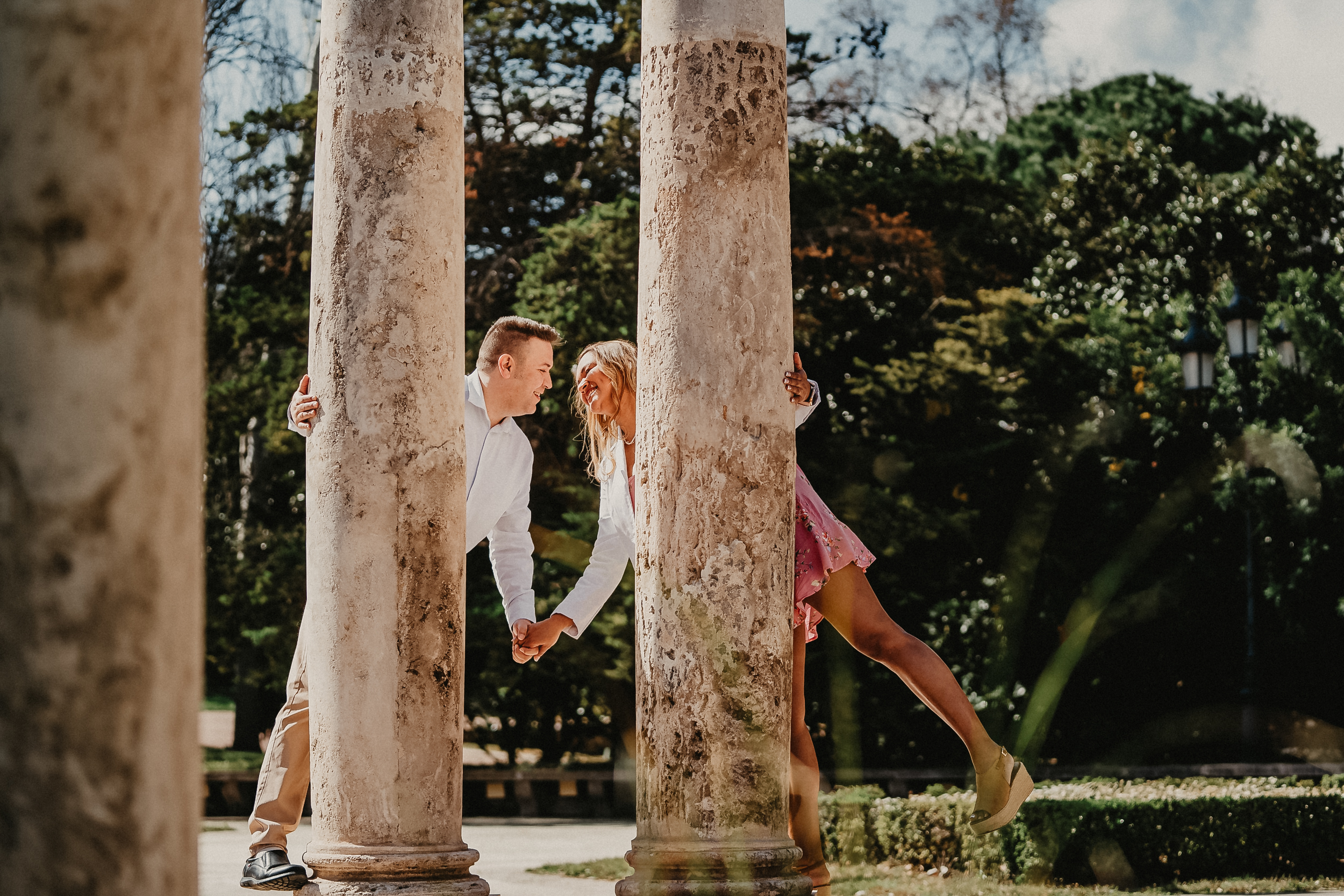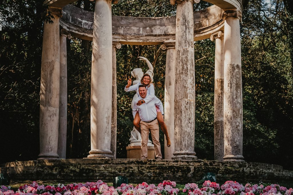 La mañana era perfecta, el sol estaba suave y la luz de la mañana resaltaba los colores vibrantes de los jardines. Pablo y Sandra estaban relajados, disfrutando de cada paso mientras paseaban entre las flores y los caminos verdes. Me encantó ver cómo se miraban, cómo se reían, y cómo se cuidaban. Cada foto contaba una historia, y las fotos de preboda en Barcelona se transformaron en recuerdos únicos de su amor.